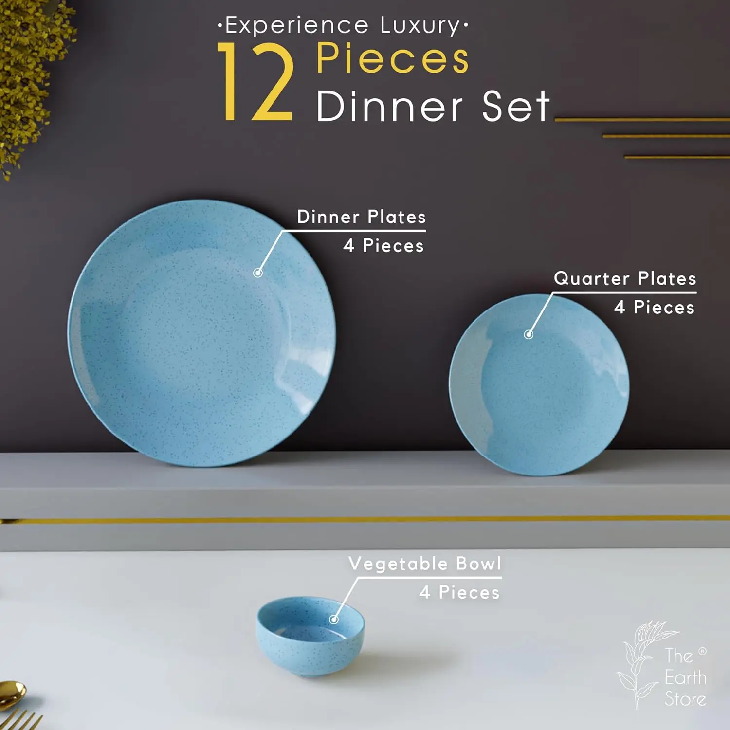 4 Full Dinner Plates, 4 Quarter Plates, 4 Vegetable Bowls | Microwave & Dishwasher Safe | Ceramic Plate | Katori