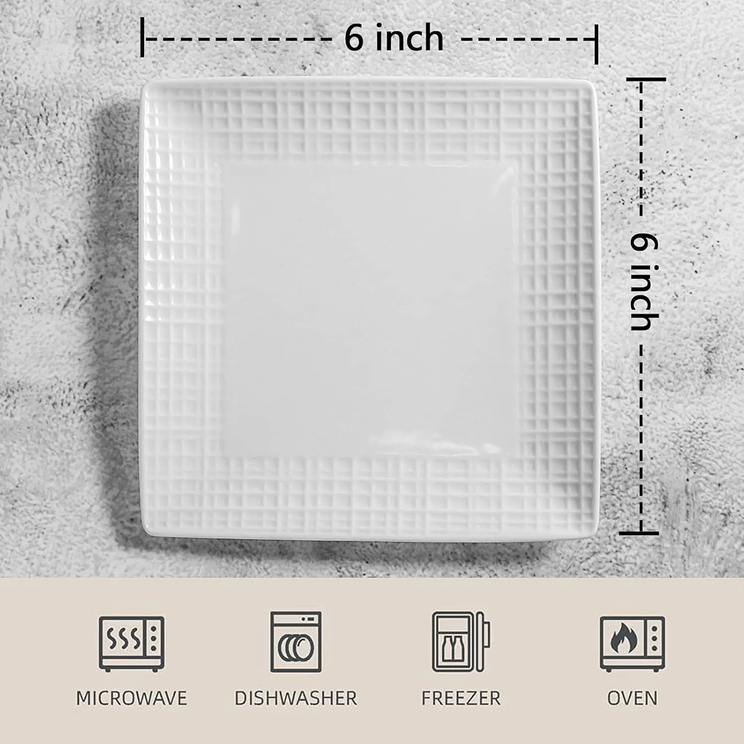 Ceramic Dessert Plates, Salad Plates Set of 6, 6 inch White Square Dinner Plates for Snack, Small Plates for Restaurant, Dishwas