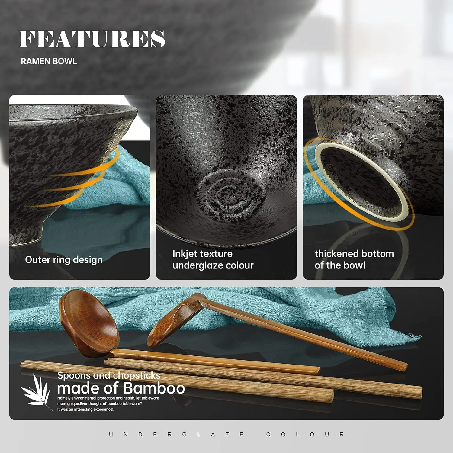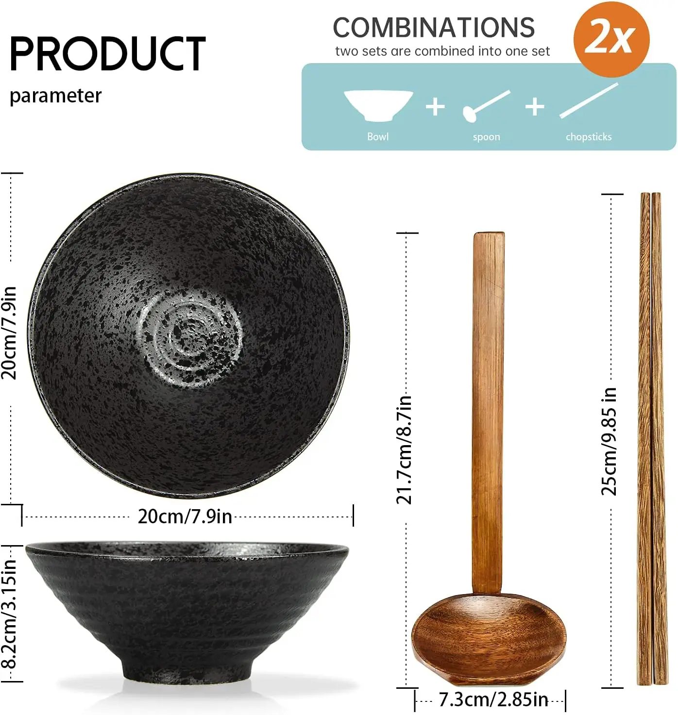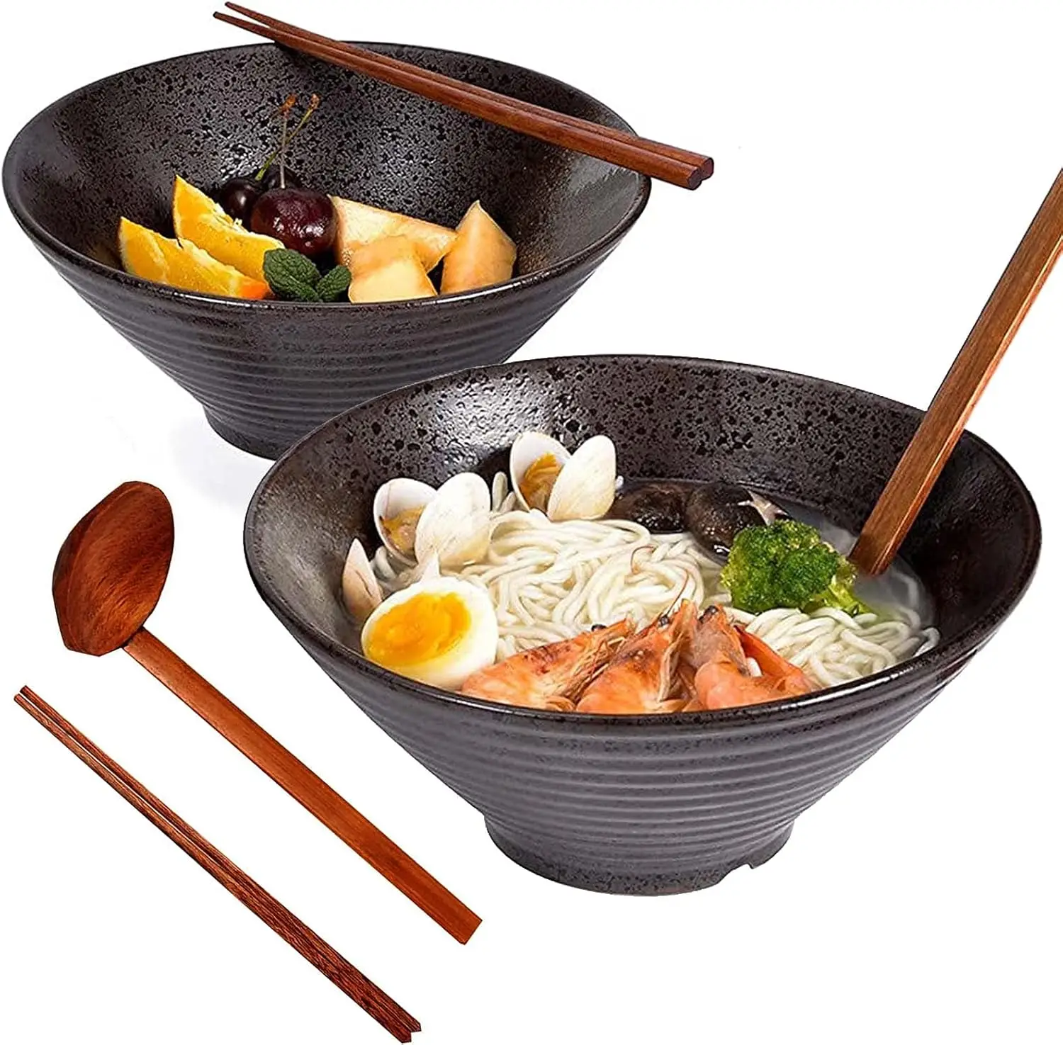 Japanese Noodles Bowls Dinner Sets for Pasta Soup Pho Mixing Salad Dishes Snack cereal Food with Spoons Chopsticks Kit 1000 Ml f