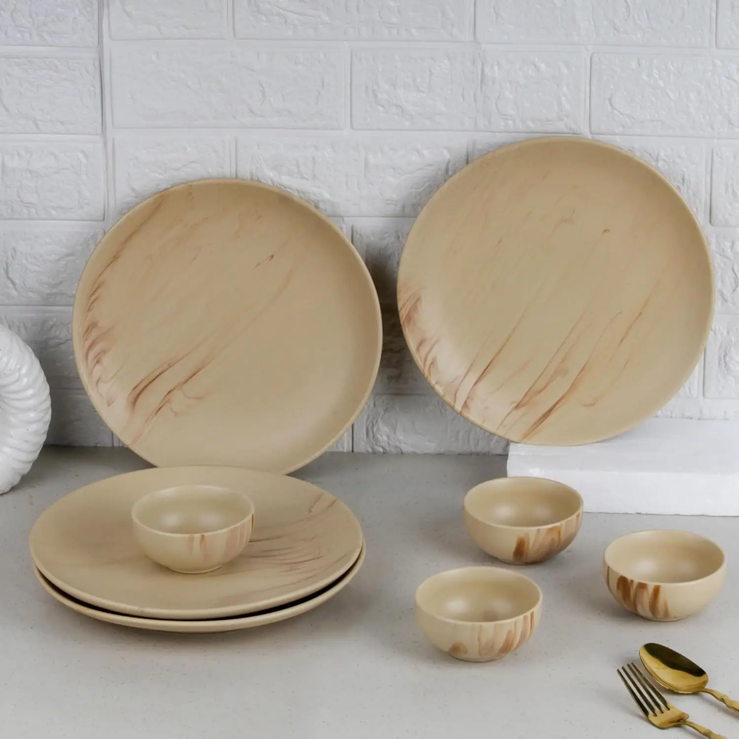 These set includes main dinner plates, quarter plates, and bowls, perfect for all your dining needs. Made from ceramic materials, these pieces are designed for everyday use. The main dinner plates are generously sized, allowing you to serve your favorite dishes with style.